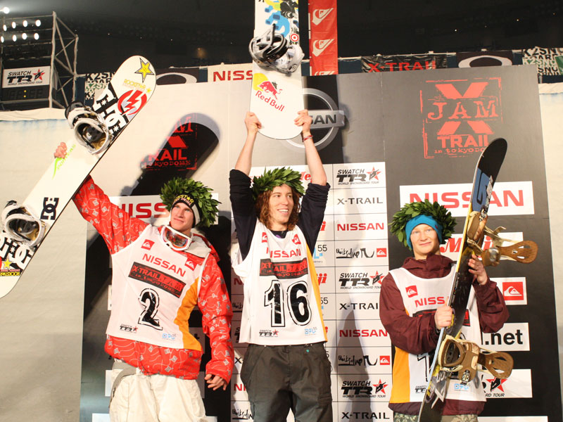 Tokyo (Japon), le 12 décembre 2008. Dans la plus pure tradition japonaise, le Tokyo Dome était plein à craquer d’une foule en osmose totale alors que le rideur américain et favori des spectateurs Shaun White sortait vainqueur d’une session de Quarterpipe épique lors du Nissan X-Trail Jam, 6 étoiles Swatch TTR. Le premier jour de compétition de ce contest double-format occasionna un niveau de ride très élevé lors duquel l’américain Chas Guldemond s’est classé second suivi de près par le finlandais Peetu Piiroinen, troisième.