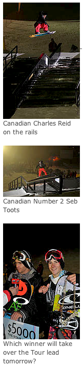 Quelques heures plus tard, le Tour faisait étape samedi au Boost Snosho, 3 étoiles et en Nouvelle-Zéande au Billabong bro Down, 3 étoiles. Ces deux contests furent remportés par des Canadiens, Mark Sollars dominant le SnoSho et Zak Stone remportant le Bro Down. Jamie Anderson (USA), actuelle leader du Swatch TTR Femmes a remporté le Bro Down, devant la jeune tchèque Sarka Pancochova, désormais n°2 mondiale.