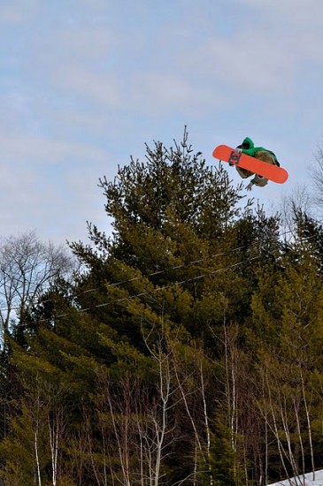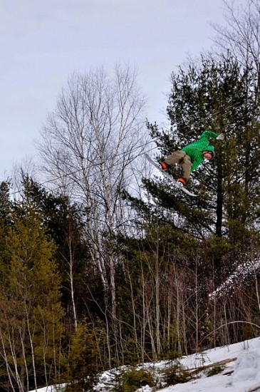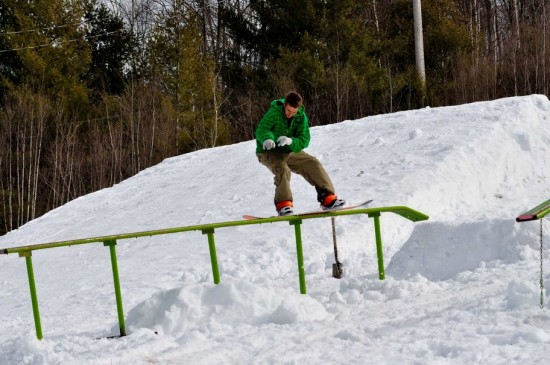 Guillaume roule sa bosse dans son snowpark bien à lui depuis 2004. Il a pu compter sur le soutien de son frère soudeur pour s’assurer de la fabrication de multiples rails qui peuplent le terrain! Grossir un peu à chaque année est son mantra!