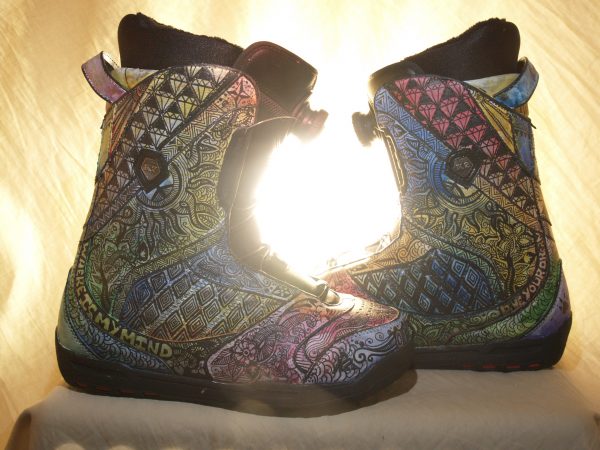 Des bottes de snowboard transformées en œuvres d’art