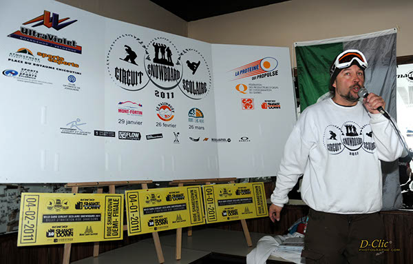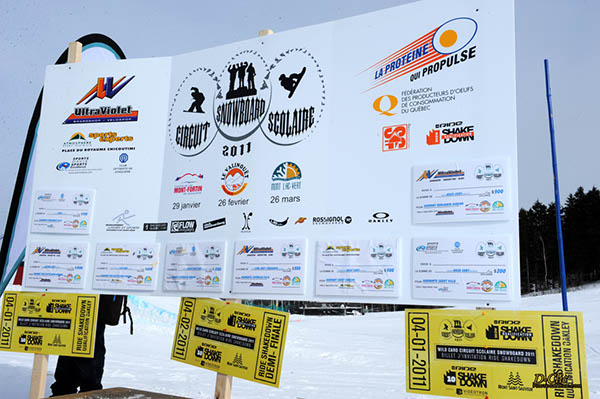 Le Circuit Scolaire Snowboard tient à remercier ses précieux commanditaires 2011 : La Fédération des Producteur de Consommation d’Oeufs du Québec, Sports Davis, Club Optimiste Jonquière, Sports Experts / Atmosphere Chicoutimi, Boutiques Ultra-Violet, Mont Fortin, Mont Valinouet, Mont Lac Vert, Slash magazine et SnowboardQuebec.com