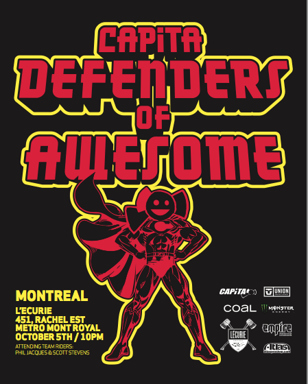 Le film de Capita mettant en vedette notre québécois Phil Jacques, Defenders of Awesome, sera présenté au bar L’Écurie à Montréal le 5 octobre prochain. 451 rue Rachel Est. Phil ainsi que Scott Stevens seront présent sur place.