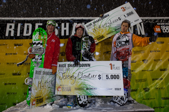 La veille à Snoqualmi, s’était le rail jam. Croyez-le ou non, c’est un autre québécois qui ramasse le plus gros chèque… Jeremy Cloutier a terminé 1er au rail jam, devant Matts Kulisek (2e) et Johnny Lazz (3e).