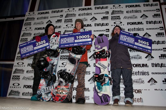 Du côté des femmes, une autre habituée des podiums au SNOWMISSION, Tamara Truchon a remporté la bourse de 1 000$. La deuxième position est allée à Marjorie Couturier qui s’est également mérité le prix du meilleur truc chez les femmes. C’est Véronique Desrosiers qui s’est vu décerner la troisième place pour clore les résultats.