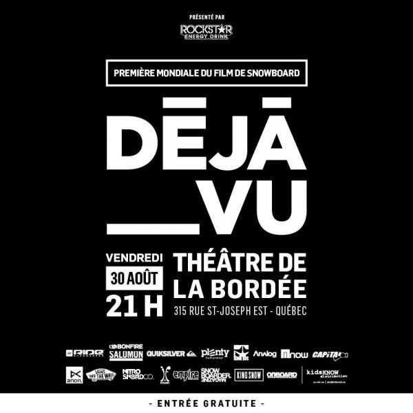 Un film québécois qui sera possiblement un de vos préféré cette saison, Déjà Vu, met en vedette les riders Frank April, Ben Bilocq, Alex Cantin, Phil Jacques, Will Lavigne, LNP, Louif Paradis et Nic Sauvé. Le 418 à son meilleur.