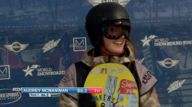 Audrey Mcmaniman a terminée 3e lors des qualifications du US OPEN Slopestyle en Pennsylvanie. Elle se mérite un laissez-passer pour la finale du US Open Snowboarding qui aura lieu à Vail en au mois de mars. Bravo Audrey ! Voici le vidéo