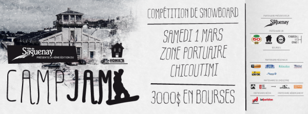 La ville de Saguenay et Homies vous invites au 4e Camp Jam. C’est le 1er mars 2014 à Chicoutimi que vous pourrez tenter votre chance de mettre la main sur les 3 000 $ en jeux.