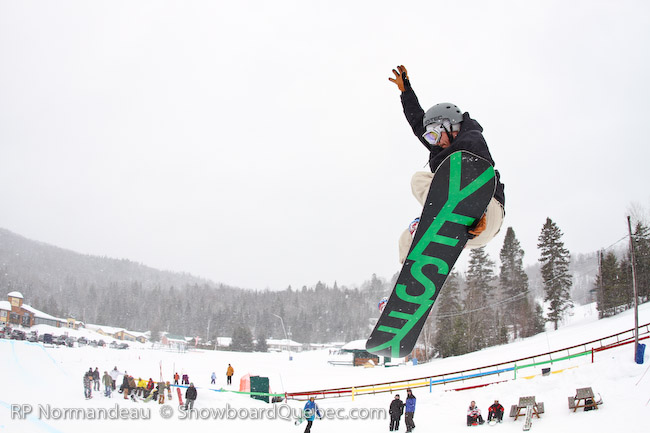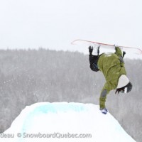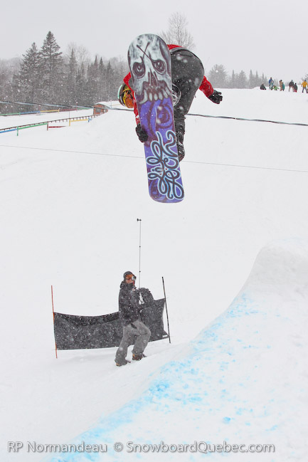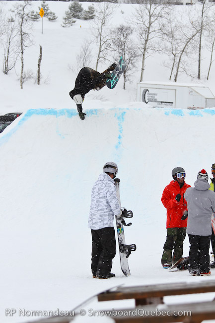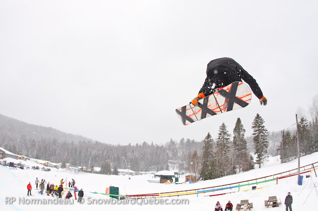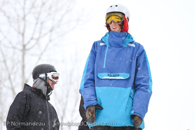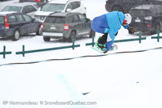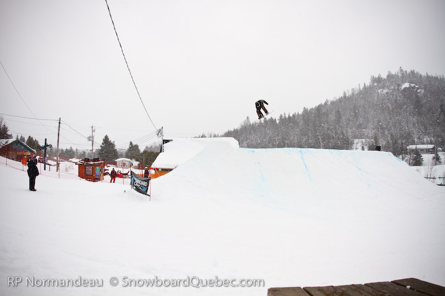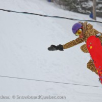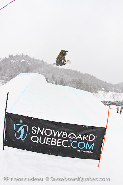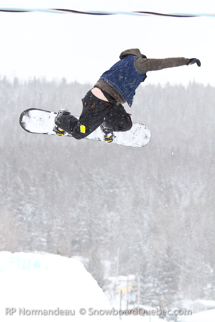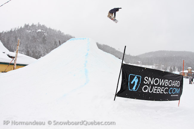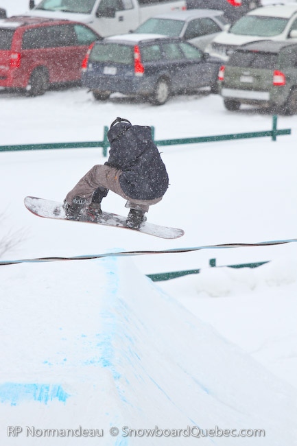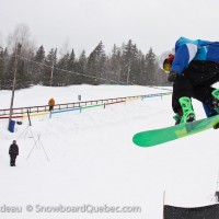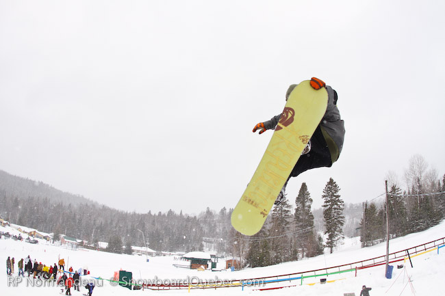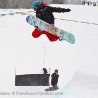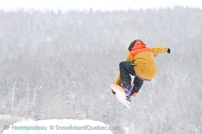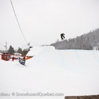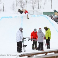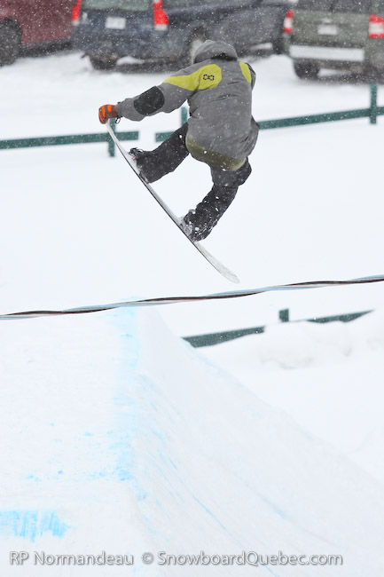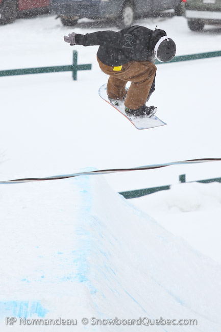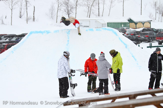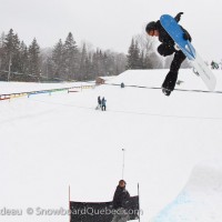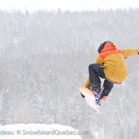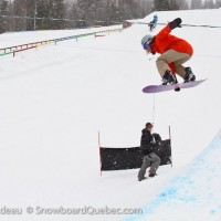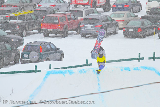 C’est au mont Belle-Neige de Val-Morin que se tenait l’événement cette année. Malgré le soleil qui n’était pas présent, ceci n’a pas arrêté les vrais bons vieux riders de se pointer au jam. C’est pas moins de 85 billets d’entrée qui ont été vendus, ce qui est un succès en soi. L’organisateur de cette saison, Sebastien Desmarais, avait construit pour l’occasion un corner-hip en plus qu’un 1/4 pipe. Le setup était super, soit un T-Bar, un snowparc, les deux nouveaux modules en bas de piste et un rassemblement de vieux loups. De plus que les autres pistes de la station étaient particulièrement plaisantes et bien enneigées. Une réussite alors bravo à tous ceux qui ont participé de prêt et de loin, participants, organisateurs, amis et employés.