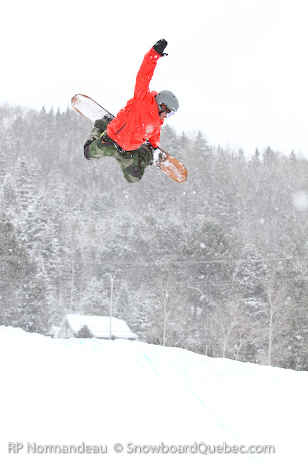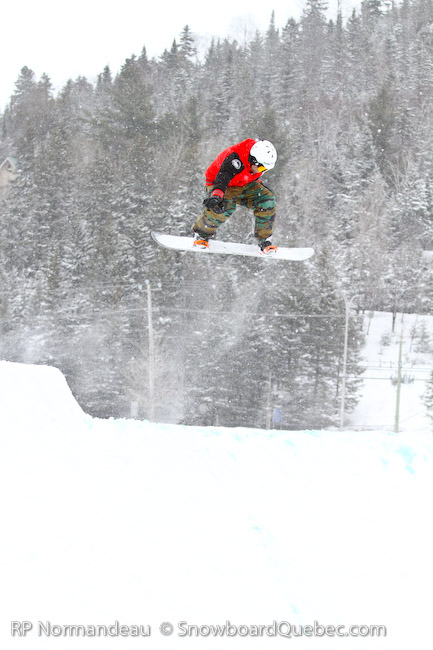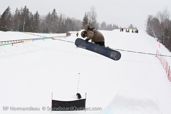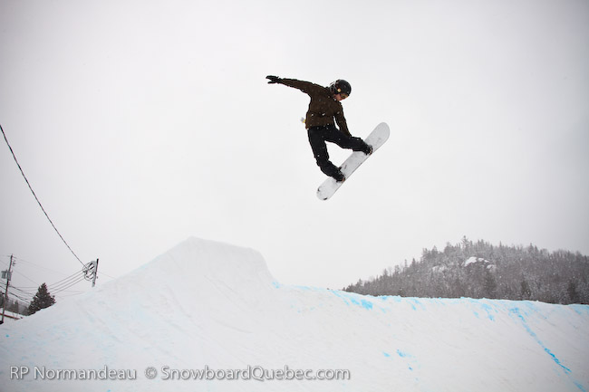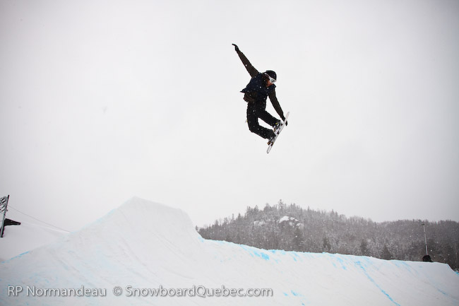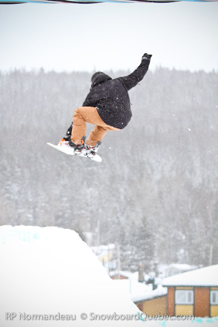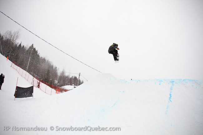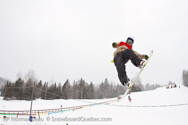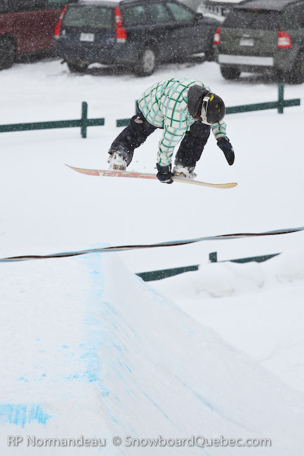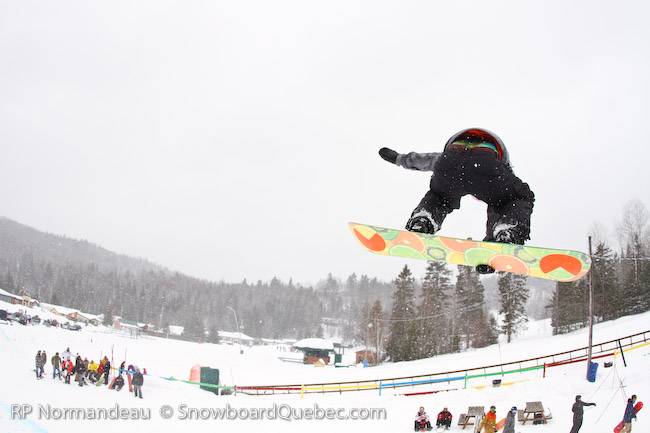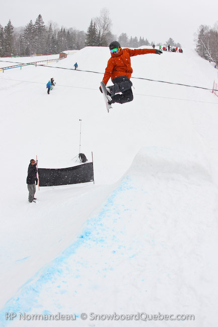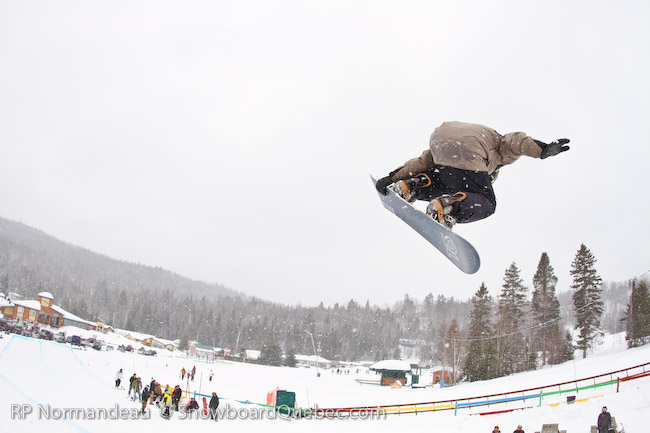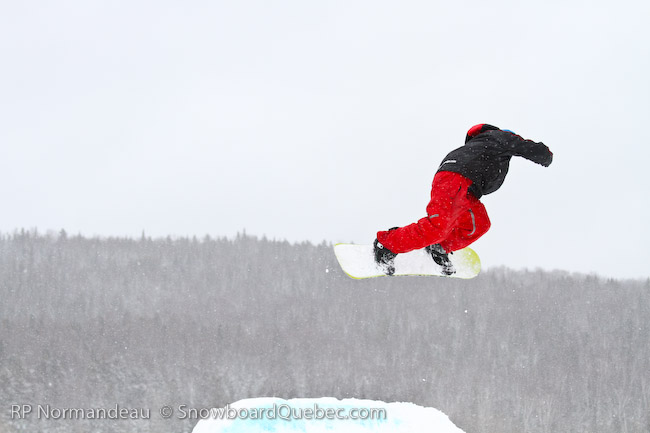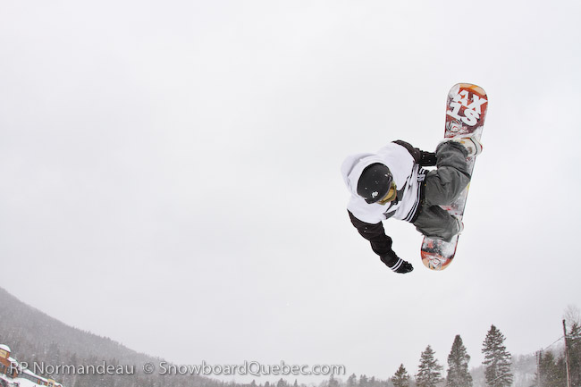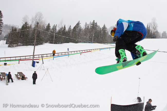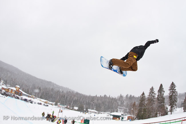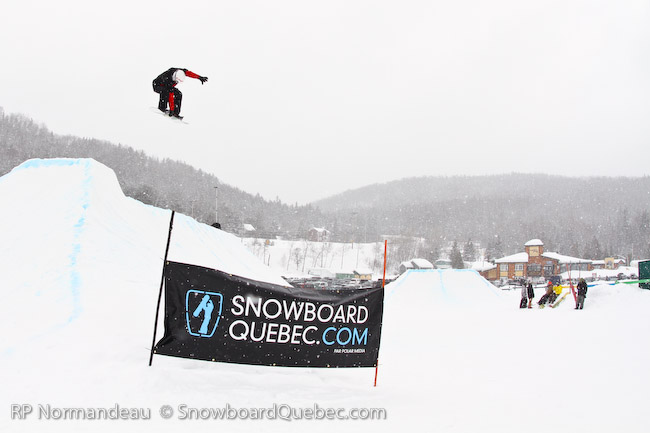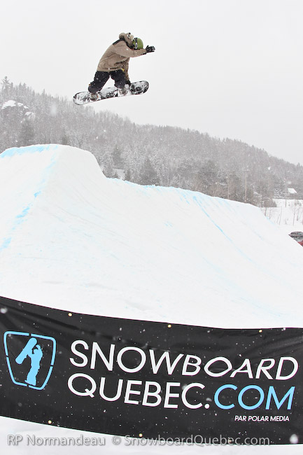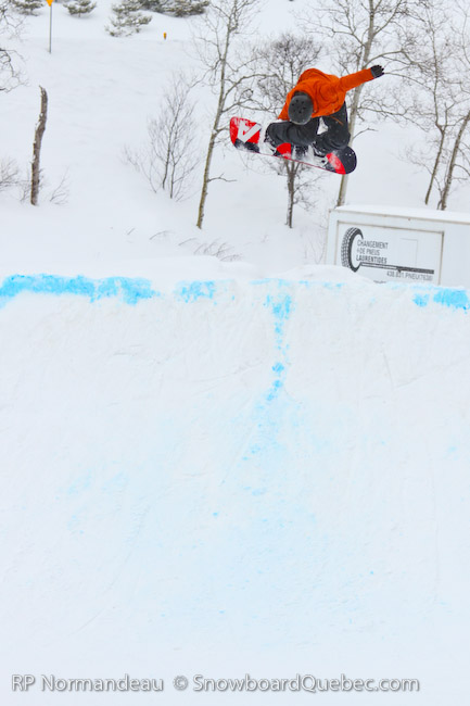 C’est au mont Belle-Neige de Val-Morin que se tenait l’événement cette année. Malgré le soleil qui n’était pas présent, ceci n’a pas arrêté les vrais bons vieux riders de se pointer au jam. C’est pas moins de 85 billets d’entrée qui ont été vendus, ce qui est un succès en soi. L’organisateur de cette saison, Sebastien Desmarais, avait construit pour l’occasion un corner-hip en plus qu’un 1/4 pipe. Le setup était super, soit un T-Bar, un snowparc, les deux nouveaux modules en bas de piste et un rassemblement de vieux loups. De plus que les autres pistes de la station étaient particulièrement plaisantes et bien enneigées. Une réussite alors bravo à tous ceux qui ont participé de prêt et de loin, participants, organisateurs, amis et employés.