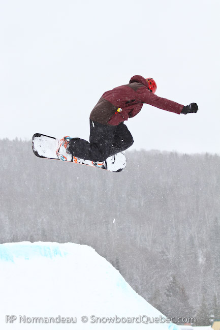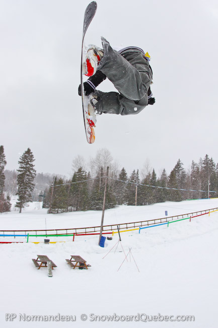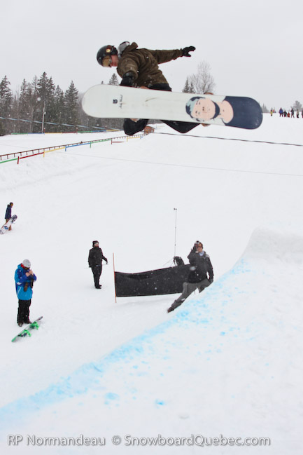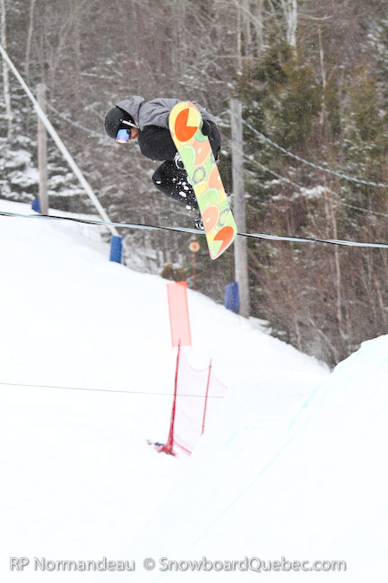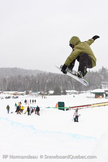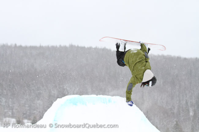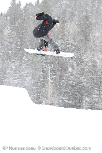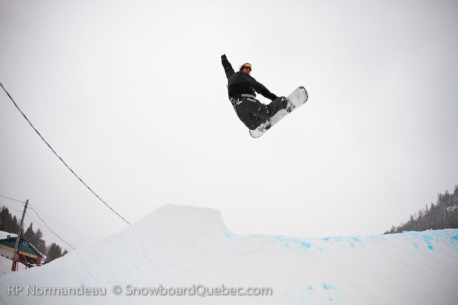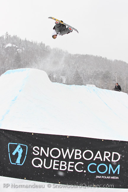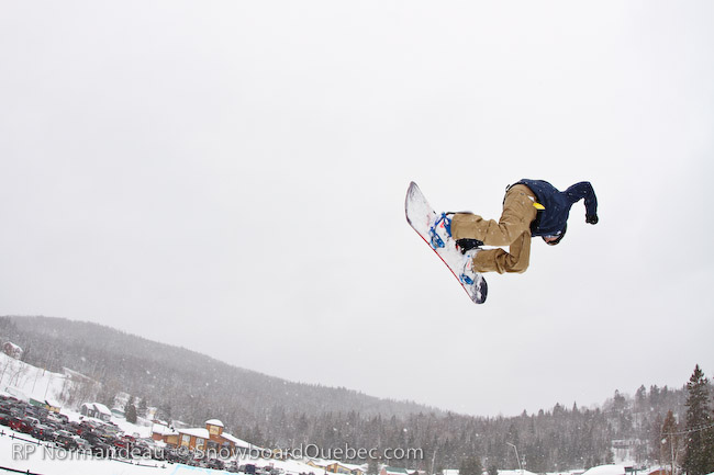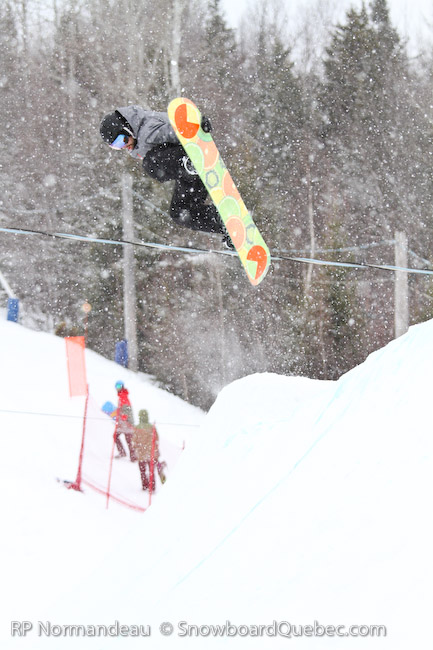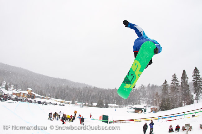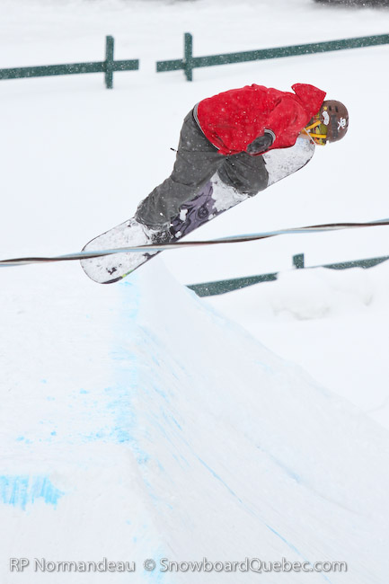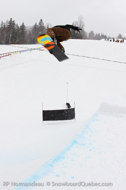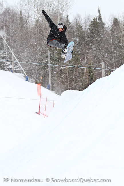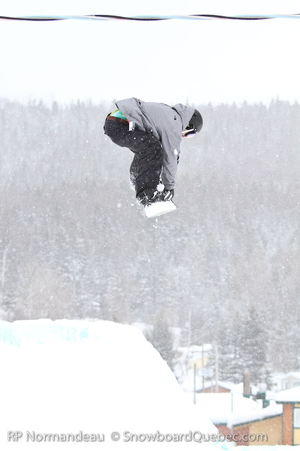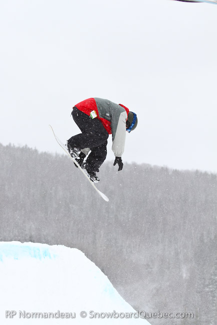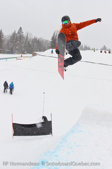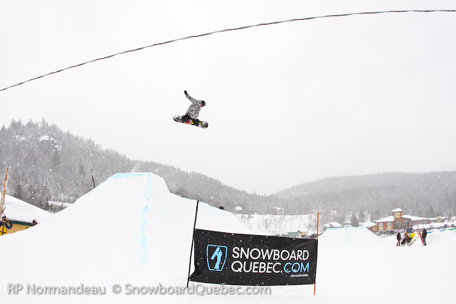 C’est au mont Belle-Neige de Val-Morin que se tenait l’événement cette année. Malgré le soleil qui n’était pas présent, ceci n’a pas arrêté les vrais bons vieux riders de se pointer au jam. C’est pas moins de 85 billets d’entrée qui ont été vendus, ce qui est un succès en soi. L’organisateur de cette saison, Sebastien Desmarais, avait construit pour l’occasion un corner-hip en plus qu’un 1/4 pipe. Le setup était super, soit un T-Bar, un snowparc, les deux nouveaux modules en bas de piste et un rassemblement de vieux loups. De plus que les autres pistes de la station étaient particulièrement plaisantes et bien enneigées. Une réussite alors bravo à tous ceux qui ont participé de prêt et de loin, participants, organisateurs, amis et employés.
