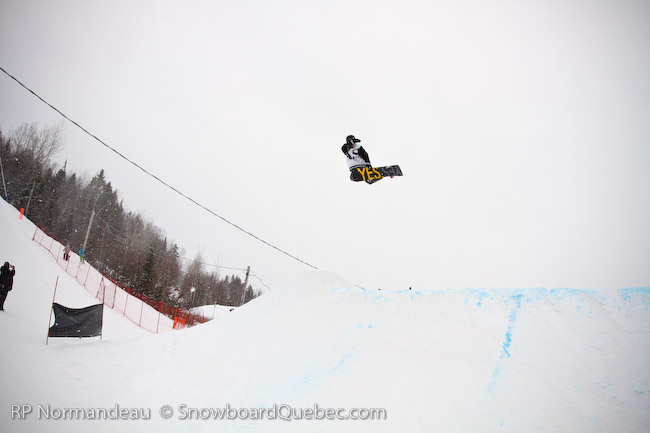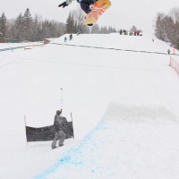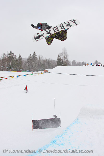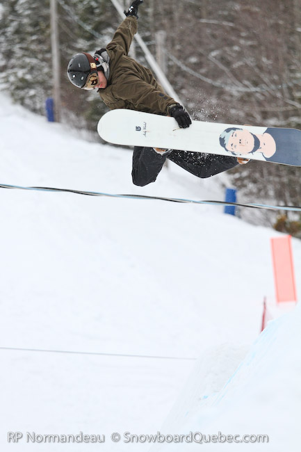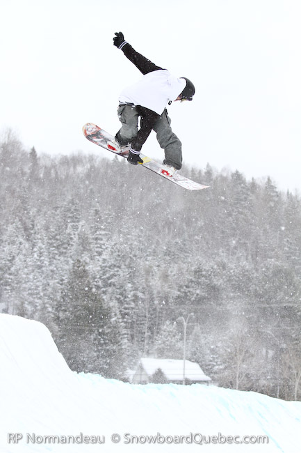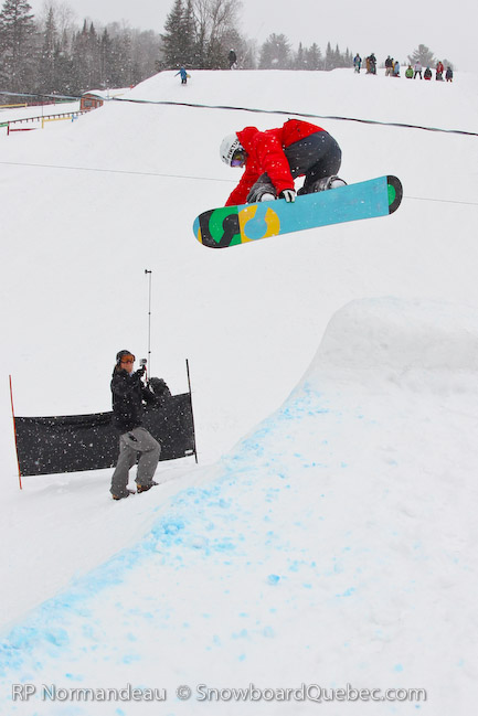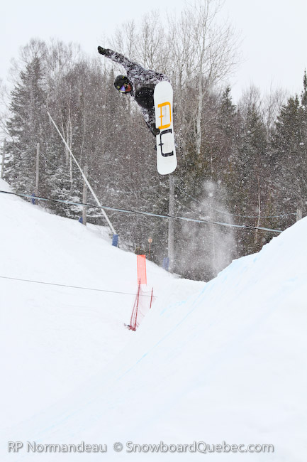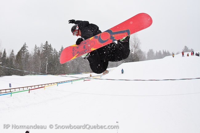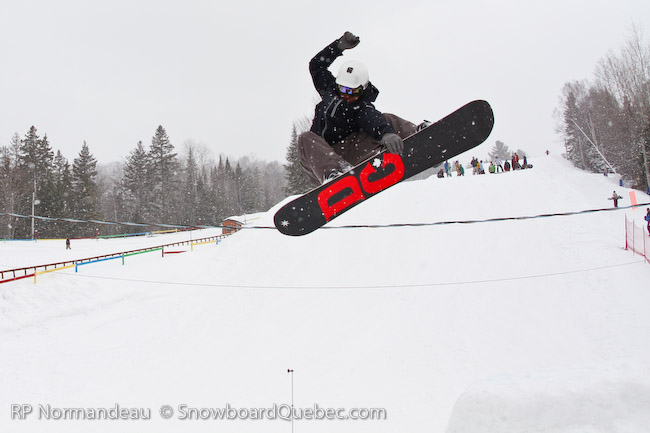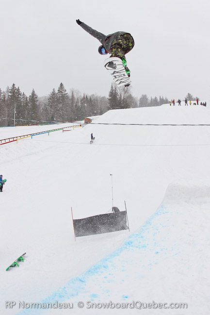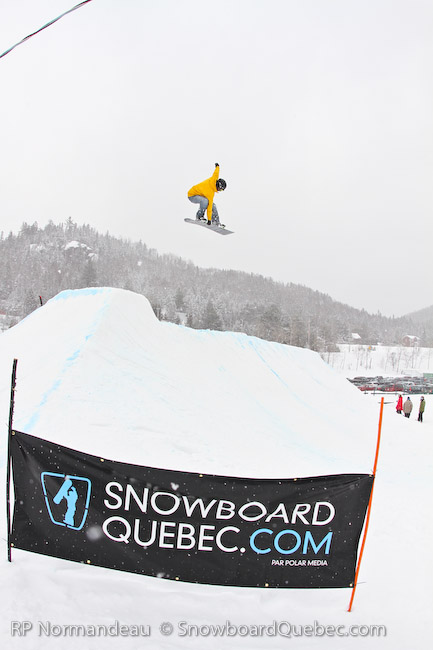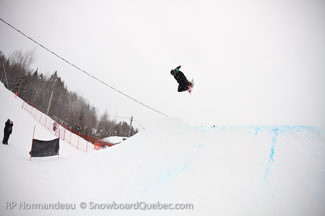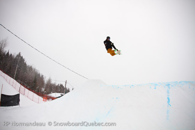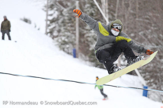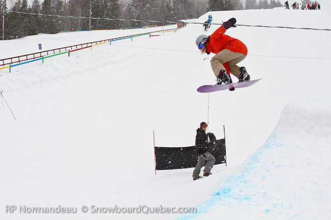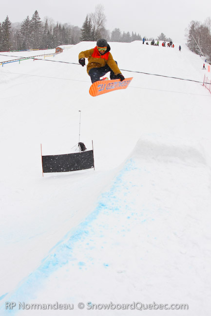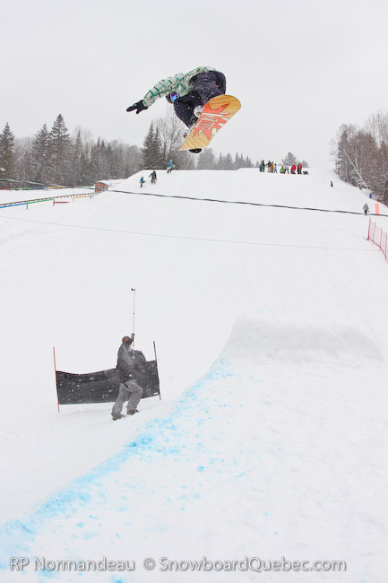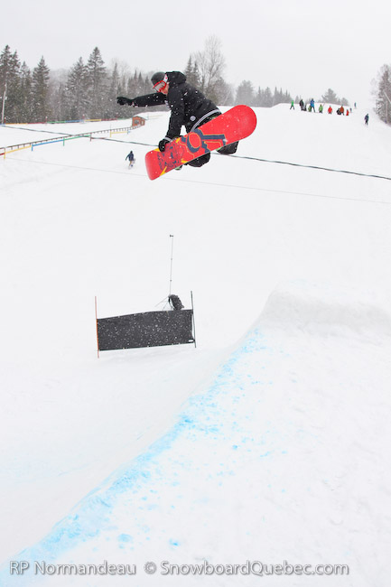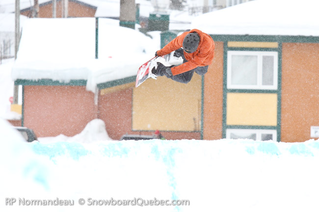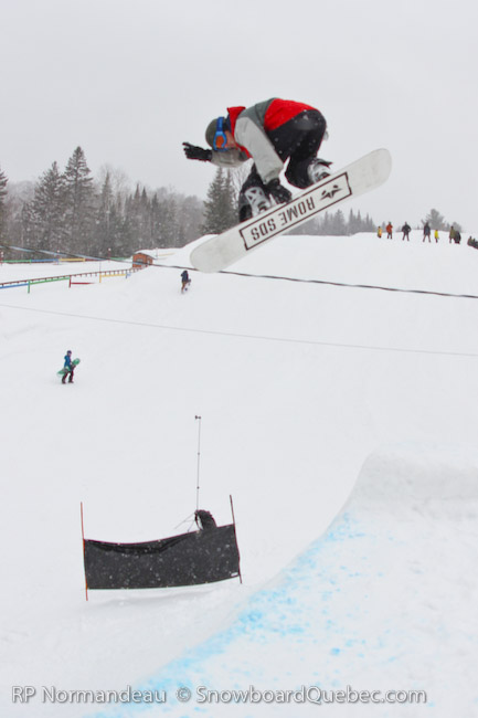 C’est au mont Belle-Neige de Val-Morin que se tenait l’événement cette année. Malgré le soleil qui n’était pas présent, ceci n’a pas arrêté les vrais bons vieux riders de se pointer au jam. C’est pas moins de 85 billets d’entrée qui ont été vendus, ce qui est un succès en soi. L’organisateur de cette saison, Sebastien Desmarais, avait construit pour l’occasion un corner-hip en plus qu’un 1/4 pipe. Le setup était super, soit un T-Bar, un snowparc, les deux nouveaux modules en bas de piste et un rassemblement de vieux loups. De plus que les autres pistes de la station étaient particulièrement plaisantes et bien enneigées. Une réussite alors bravo à tous ceux qui ont participé de prêt et de loin, participants, organisateurs, amis et employés.
