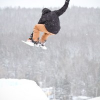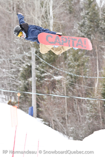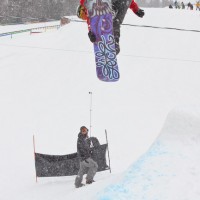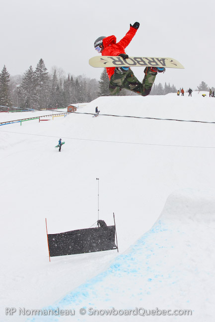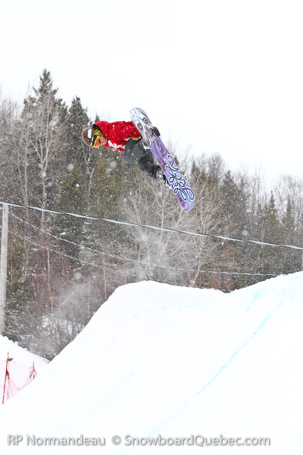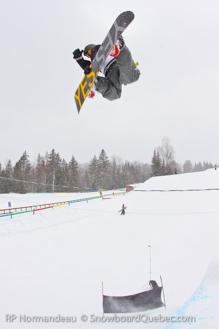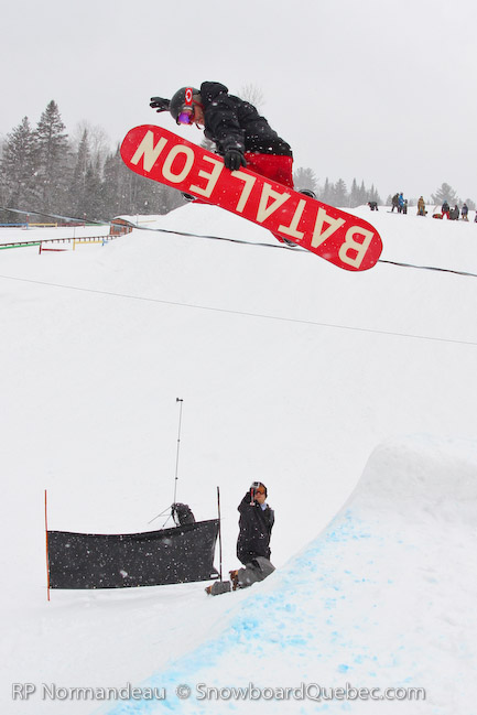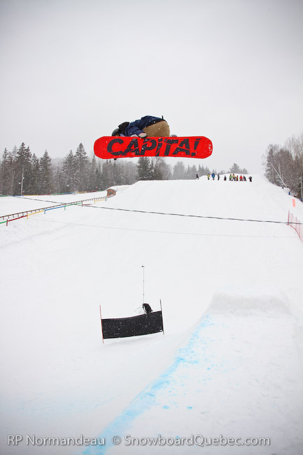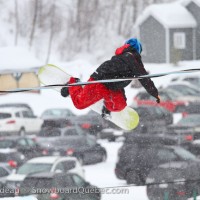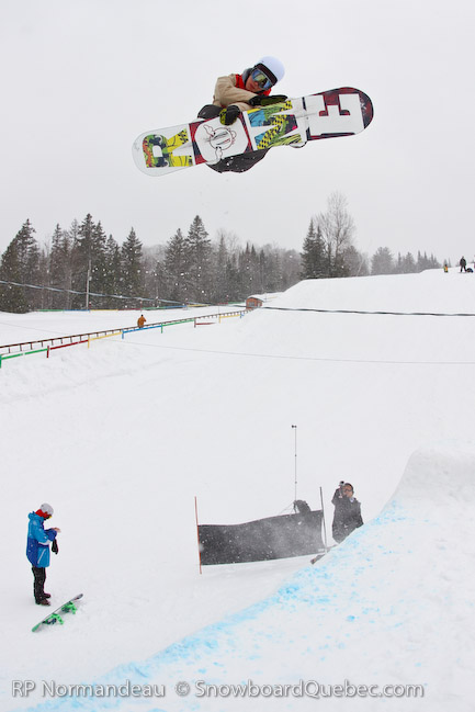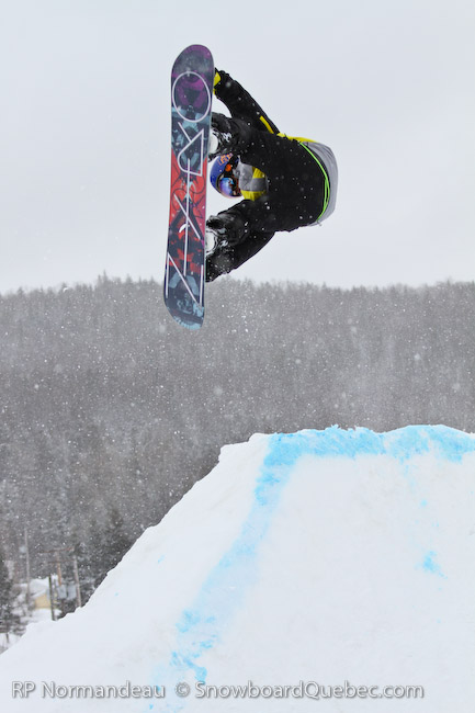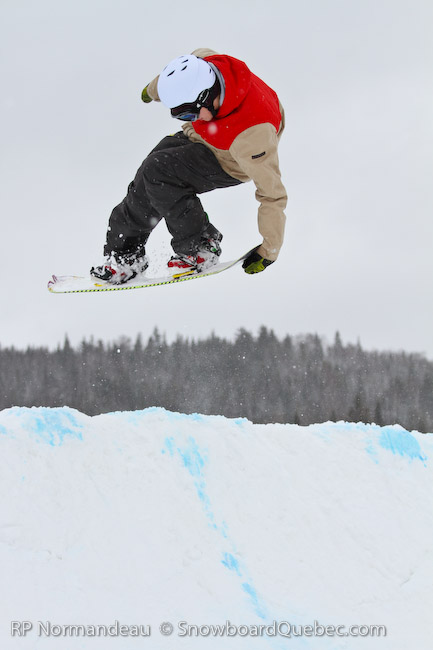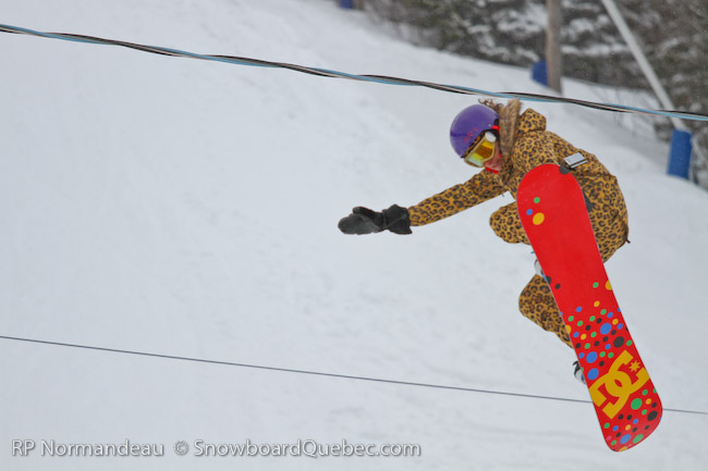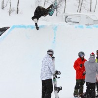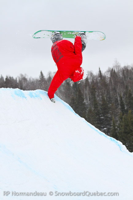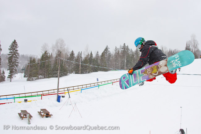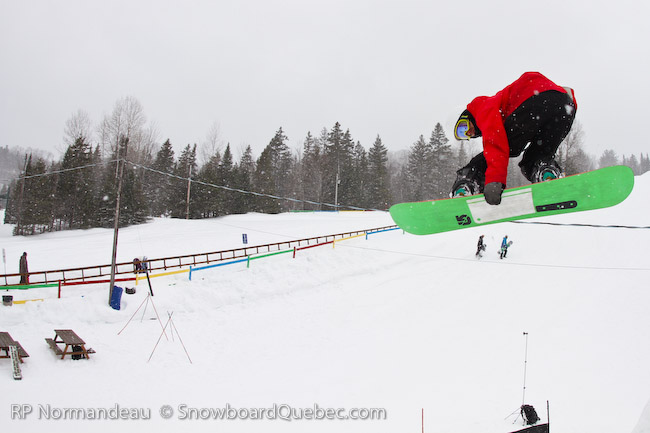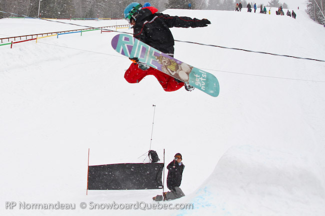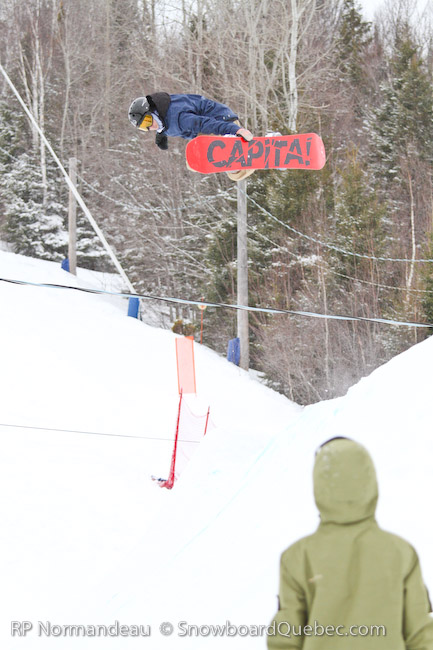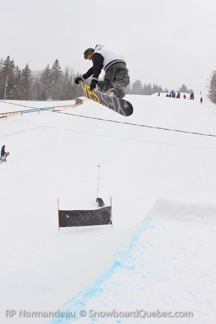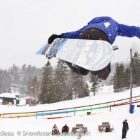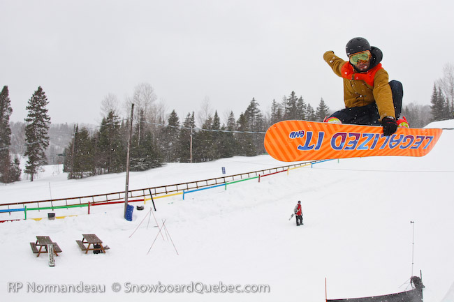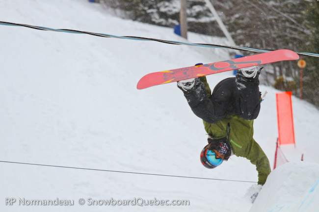 C’est au mont Belle-Neige de Val-Morin que se tenait l’événement cette année. Malgré le soleil qui n’était pas présent, ceci n’a pas arrêté les vrais bons vieux riders de se pointer au jam. C’est pas moins de 85 billets d’entrée qui ont été vendus, ce qui est un succès en soi. L’organisateur de cette saison, Sebastien Desmarais, avait construit pour l’occasion un corner-hip en plus qu’un 1/4 pipe. Le setup était super, soit un T-Bar, un snowparc, les deux nouveaux modules en bas de piste et un rassemblement de vieux loups. De plus que les autres pistes de la station étaient particulièrement plaisantes et bien enneigées. Une réussite alors bravo à tous ceux qui ont participé de prêt et de loin, participants, organisateurs, amis et employés.