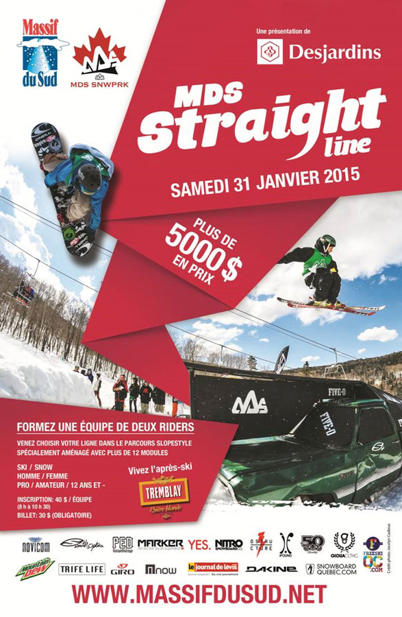 MERCI à nos partenaires : DESJARDINS, 5-0, Tremblay, D-Structure, Trife Life, MTN DEW, Journal de Lévis, Novicom, Snowboard quebec, Freeski quebec, Gigua, Le Pédalier Boardshop, Smith, YES, NOW, Dakine, Nitro, Marker, I Found, GIRO.