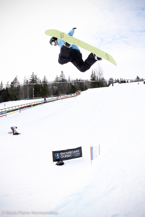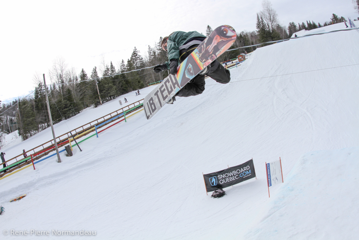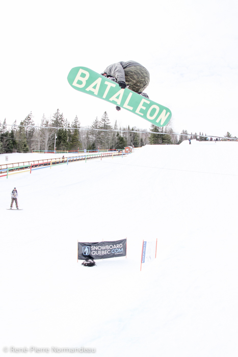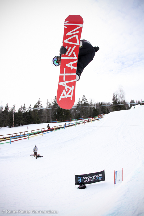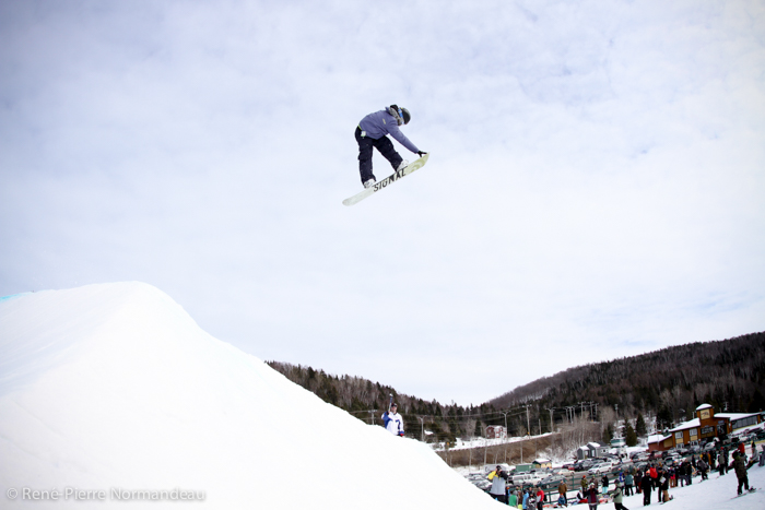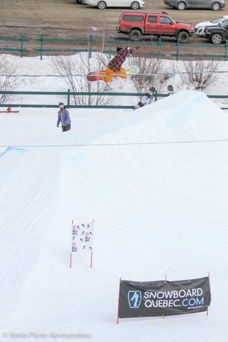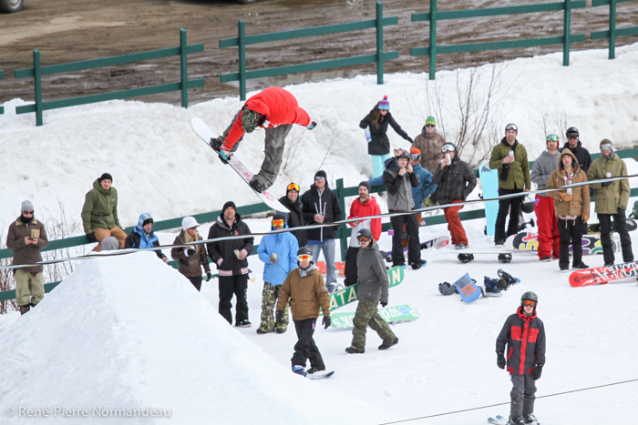 Wow! Quelle belle journée ce fût. Le gros soleil, il fesait chaud, la neige était belle et le snowpark de la station Belle-Neige était vraiment parfait! Pas juste le beau corner-hip construit spécialement pour l’occasion, tout le snowparc, y compris le boardercross était tripant. Un des beaux parc que j’ai eu la chance de rider depuis un moment! C’est vraiment cool de sauter sur des modules progressifs où on peut aller petit ou gros sur le même module. Je tien à dire un gros merci à Seb Desmarais et aussi à Martin et son équipe de Belle-Neige. Reno Belisle, Matt Dano, Miguel Massé, Mike Page, Martin Normandin sont quelques noms de riders qui étaient présent et qui sont allé gros, comme dans l’temps! Il y à eu plus de 150 inscriptions au Jam… c’est pas rien ;-)