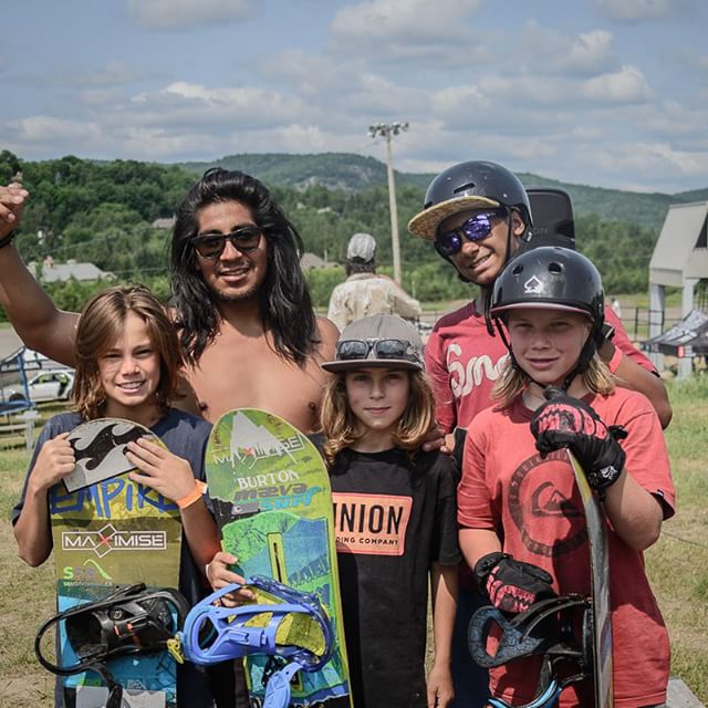 The original SQF brothers, Robbie Powter, Greg Soller, David Brown, Eric Martinez shredding the summer snow at Saint-Sauver Akamp. One Love