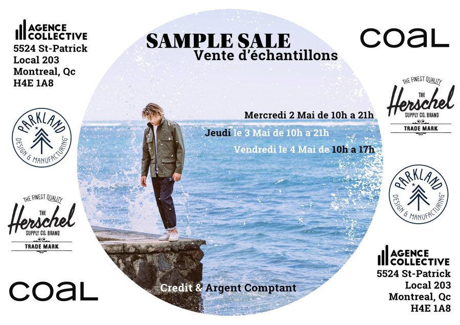 Vente d’échantillons pour les marques Coal, Herschel, Parkland