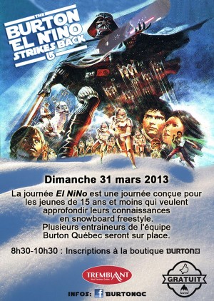 Dimanche le 31 mars 2013 À Tremblant il y aura le Burton El Nino, un événement pour les jeunes planchistes. Si vous êtes jeune, ou