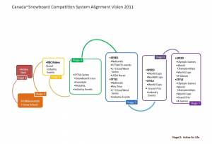 La fédération canadienne de snowboard (CSF) propose désormais un tout nouveau système de stage de compétition de snowboard. Il s’agit d’un graphique présenté en 8