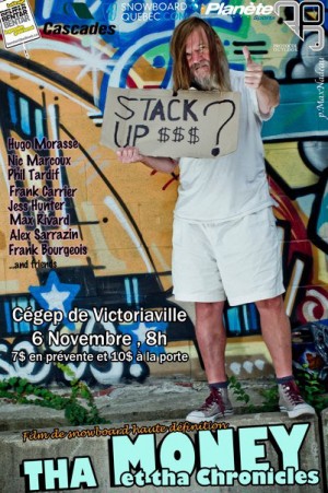 Les boys de Stack Up Film ainsi que SnowboardQuebec.com vous invites à venir en grand nombre à la première de Tha Money. Rendez-vous au Cégep